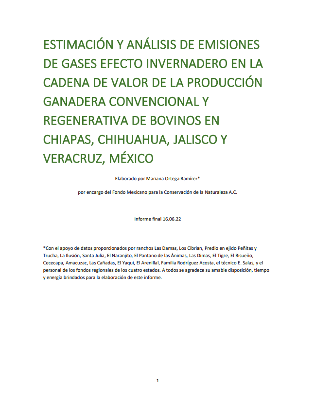 Este informe compara las emisiones entre prácticas ganaderas convencionales y regenerativas en Chiapas, Chihuahua, Jalisco y Veracruz. Analiza componentes específicos como la fermentación entérica, el manejo de excretas y el uso de energía fósil, proporcionando recomendaciones para mitigar las emisiones en la cadena de producción y distribución de carne y leche.