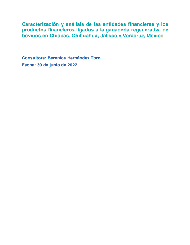 Examina la disponibilidad y accesibilidad de financiamiento para la transición a modelos de ganadería sostenible. Analiza instrumentos financieros públicos, privados y de banca de desarrollo, identificando 26 opciones viables. Destaca la falta de acceso a crédito para pequeños productores debido a requisitos estrictos y percepción de alto riesgo. Propone estrategias como garantías financieras, asistencia técnica y desarrollo de modelos de negocio para mejorar la viabilidad económica de la ganadería regenerativa.