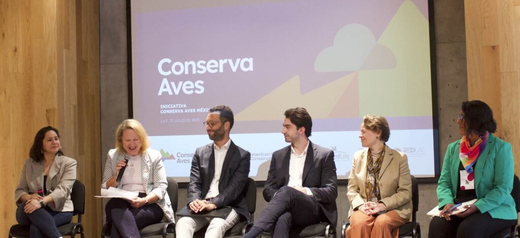 De izquierda a derecha: Cecilia Vides, Coordinadora Regional de la Iniciativa Conserva Aves de la Red de Fondos Ambientales de Latinoamérica y el Caribe (RedLAC); Susan Pereverzoff, Ministra Consejera de la Embajada de Canadá en México; Patrick Nadeau, CEO y Presidente de Birds Canada; Emilio Aristegui, Director del Consejo de Conservación para América Latina; Renée González, Directora General, y Amantina Lavalle, Directora de Operaciones, ambas de Fondo Mexicano para la Conservación de la Naturaleza. Crédito: Jessica García.