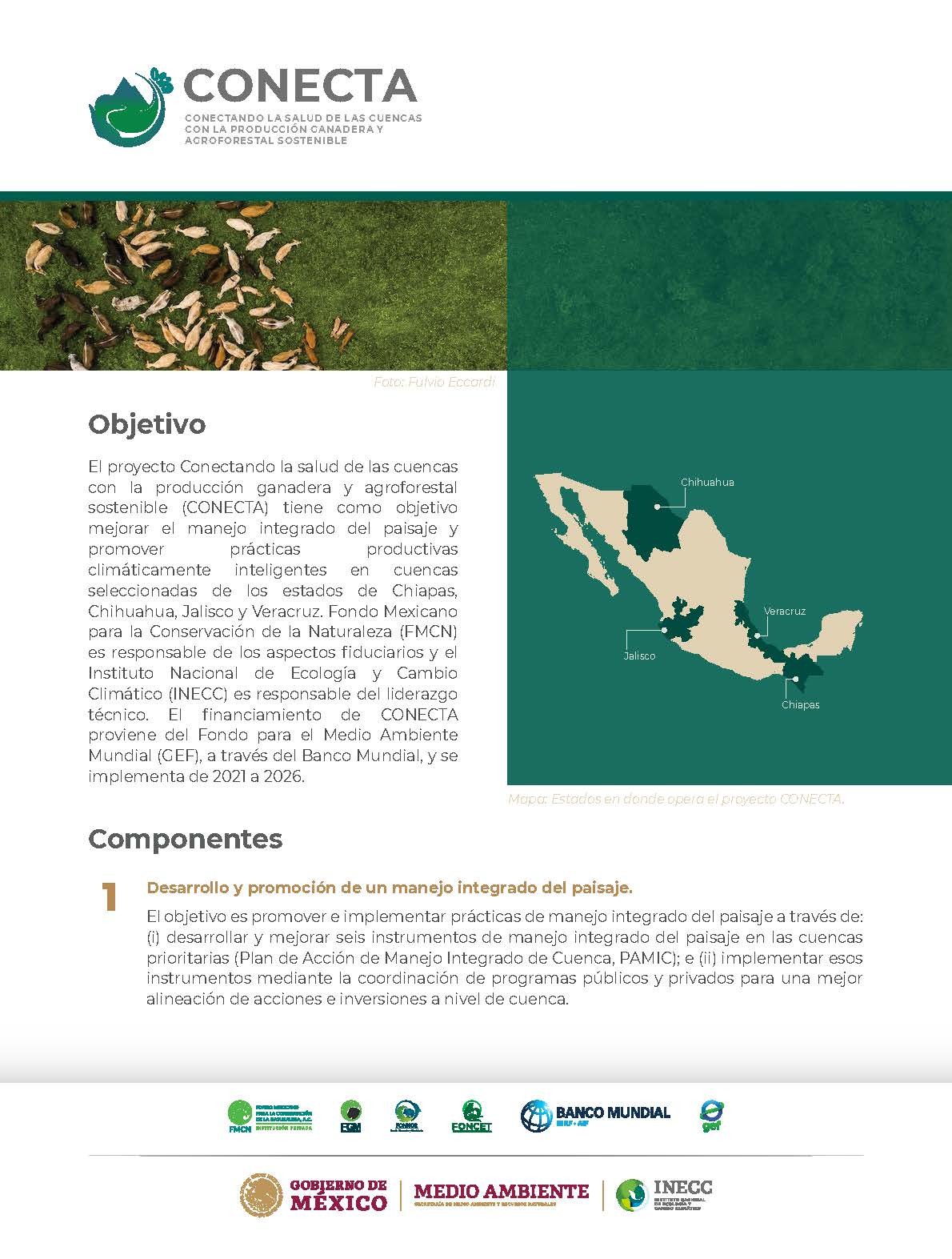 Las cuencas elegibles se determinaron en el diseño del proyecto. CONECTA se implementa en cuencas seleccionadas de los estados de Chiapas, Chihuahua, Jalisco y Veracruz, y no se espera ampliarlo a otras regiones.